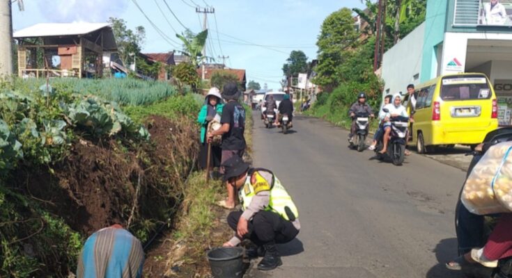 Garut Jejak-kriminal.com-Polsek Pasirwangi Polres Garut bersama komunitas angkutan kota (angkot) serta warga masyarakat melaksanakan kegiatan gotong royong pembersihan selokan di sepanjang jalan raya Pasirwangi, Kampung Babakan Pasirwangi, Desa Pasirwangi, Kecamatan Pasirwangi, Kabupaten Garut, Jumat (26/12/2025).