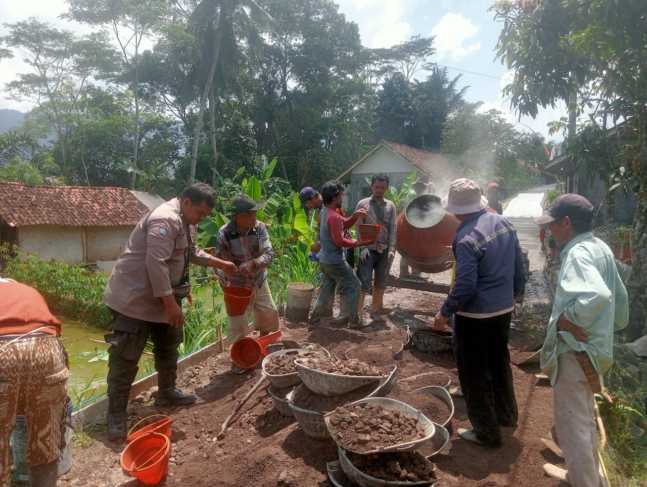 Ciamis — Kepolisian Resor Ciamis melalui jajaran Polsek Rajadesa kembali menunjukkan perannya dalam mendukung pembangunan desa sekaligus menjaga keamanan masyarakat. Bhabinkamtibmas Desa Sukajaya Aipda Rudi Permana melaksanakan giat sambang dan monitoring pekerjaan rabat beton jalan yang didanai dari Dana Desa Tahun Anggaran 2025 di Dusun Bentuksari, Desa Sukajaya, Kecamatan Rajadesa, Kabupaten Ciamis, pada Minggu (21/09/2025).