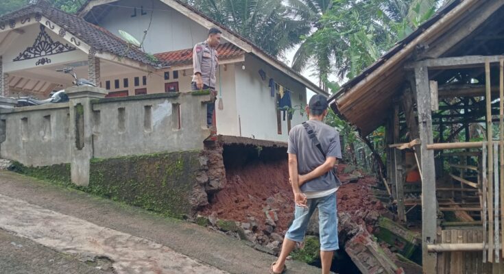 CIAMIS ~ Personel Polsek Rancah Polres Ciamis Polda Jabar mendatangi lokasi bencana alam di Desa Sukasaru. Bencana alam ini tepatnya terjadi pada TPT warga di Dusun Cihideung Rt.008 Rw.005, Desa Sukasaru, Kecamatan Tambaksari, Kabupaten Ciamis, Jawa Barat, Jumat (14/11/2025), dini hari.