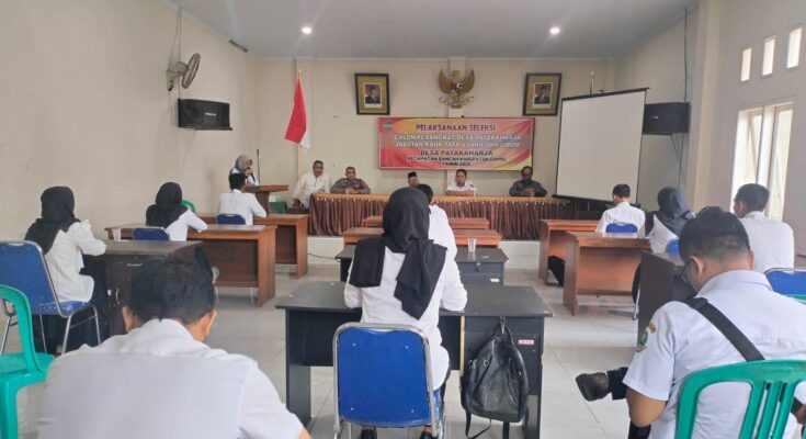 CIAMIS ~ Personel Polsek Rancah Polres Ciamis Polda Jabar melaksanakan monitoring kegiatan seleksi calon perangkat desa bidang Jabatan Kepala Urusan Tata Usaha dan Umum Desa Patakaharja. Kegiatan tersebut berlangsung di Kantor Desa Patakaharja, Kecamatan Rancah, Kabupaten Ciamis, Jawa Barat, Rabu (7/5/2025).