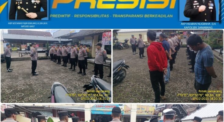 Garut.Jejak-kriminal.com-Polsek Samarang Polres Garut. melaksanakan kegiatan Apel pagi yang di pimpin langsung kapolsek samarang AKP Hilman Nugraha bersama personil, Anggota polsek samarang 28 Anggota Kurang 2. Yang hadir 26. Anggota piket siaga 2.