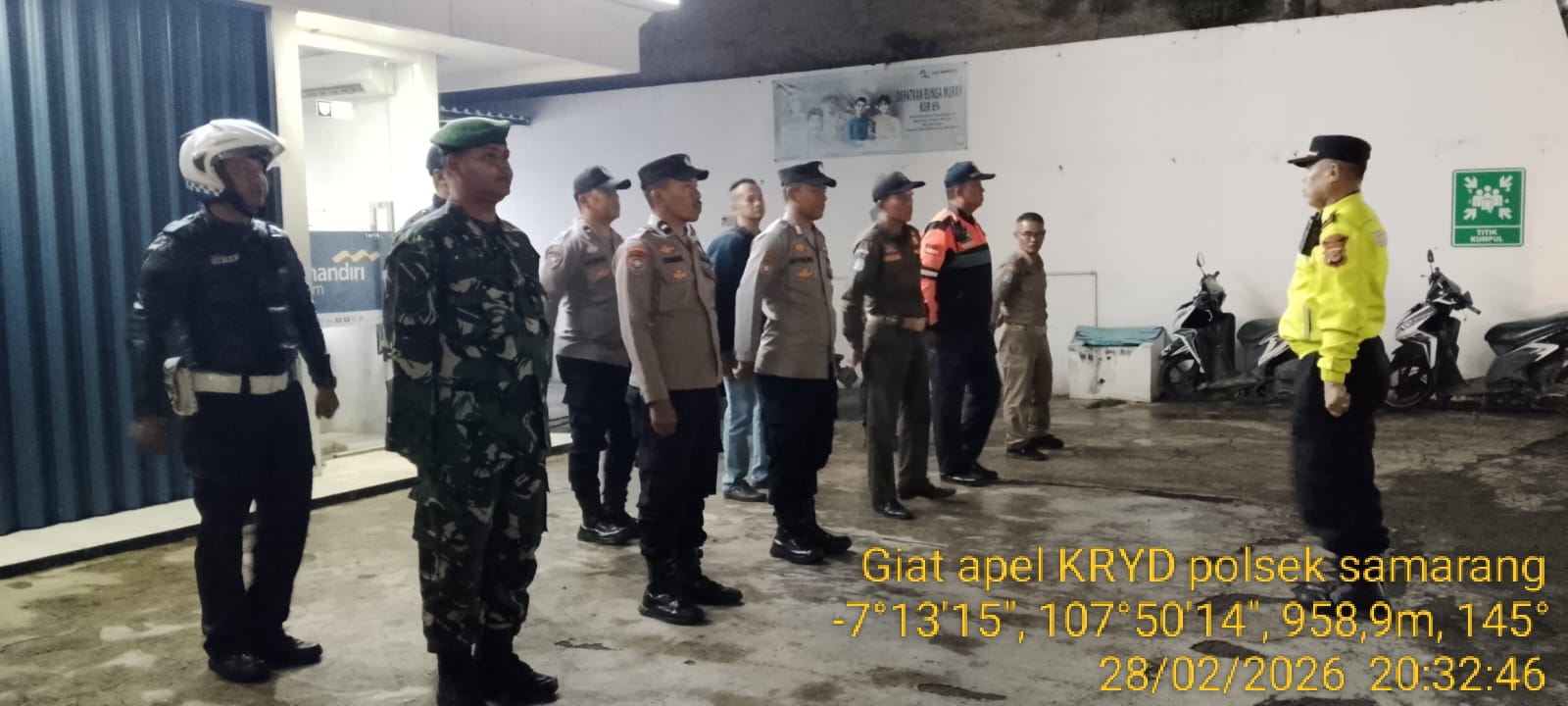 Jejak-kriminal.com-Garut Sabtu 28 Februari 2026. Polsek Samarang Polres Garut telah melaksanakan kegiatan Apel gabungan di Pimpin langsung oleh Kapolsek Samarang AKP Hilman Nugraha.,S.H. dalam rangka cipta kondisi, kegiatan Apel gabungan ini bertempat di halaman kantor bank mandiri, Kecamatan Samarang, Kabupaten Garut.
