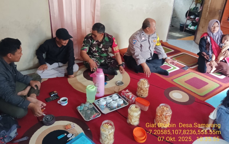 Garut 7 Oktober 2025 Bhabinkamtibmas Desa Samarang Aiptu Gunawan Dwi N.P. bersama Babinsa Desa Samarang Serka Yoyo dan pendamping desa melaksanakan kegiatan monitoring pendistribusian Bantuan Langsung Tunai Dana Desa (BLT DD) Tahap 3 Tahun 2025, yang dilaksanakan di wilayah RW 01 hingga RW 12 Desa Samarang, Kecamatan Samarang, Kabupaten Garut.