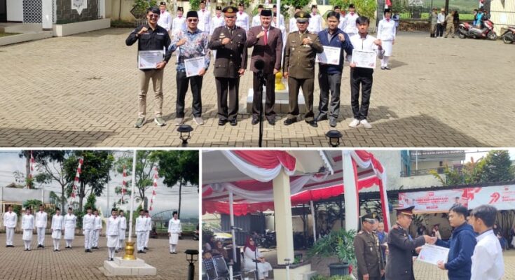 Jejak-kriminal.com-Garut 16 Agustus 2025 kegiatan Pengukuhan Pasukan Pengibar Bendera Merah Putih Tahun 2025 Tingkat Kecamatan Samarang, yang bertempat di halaman Kantor Kecamatan Samarang, Desa Samarang, Kecamatan Samarang, Kabupaten Garut.
