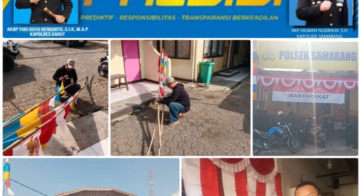 Jejak-kriminal com-Garut Kamis 15 Agustus 2025. Dalam rangka menyambut Hari Ulang Tahun ke-80 Negara Kesatuan Republik Indonesia, Polsek Samarang Polres Garut melaksanakan kegiatan pemasangan bendera merah putih pada setiap kendaraan yang melintas di jalan, depan Mako Polsek Samarang.