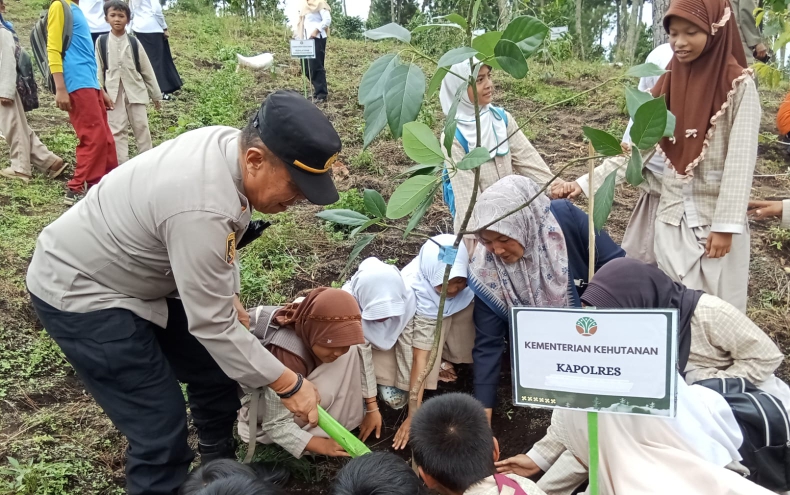 Jejak-kriminal.com-Garut Rabu 19 November 2025. Kapolsek Samarang Mewakili Kapolres Garut Menghadiri Kunjungan Kerja Menteri Kehutanan RI pada Inauguration of Pilot Bioethanol Aren di PT PGE Area Kamojang serta Kegiatan Penanaman Pohon di Kawasan Hutan Lindung Kamojang, Desa Sukakarya, Kecamatan Samarang, Kabupaten Garut
