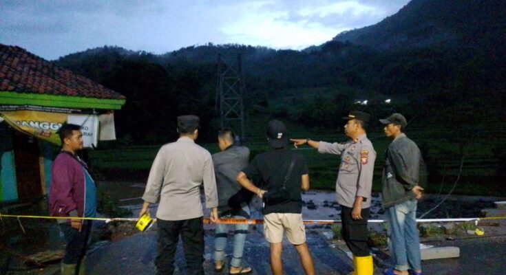 Garut | Polsek Singajaya Polres Garut melakukan pengecekan ke lokasi ambruknya jembatan gantung Cimanisan yang berada di Jalan Raya Singajaya – Peundeuy, tepatnya di Kampung Seleketan RT 07 RW 01 Desa Toblong Kecamatan Peundeuy Kabupaten Garut, pada hari Jumat (07/11/2024) sore.