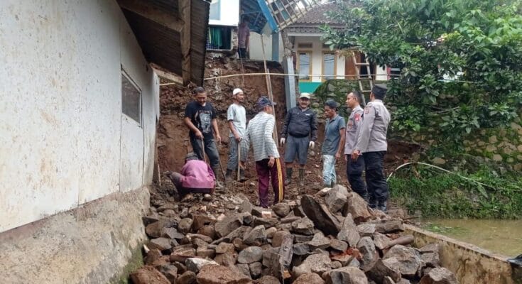 Tembok Penahan Tebing (TPT) di bagian depan rumah milik Ny. Gajah Logayah, seorang ibu rumah tangga berusia 79 tahun, amblas sepanjang 6 meter dengan ketinggian 3 meter.