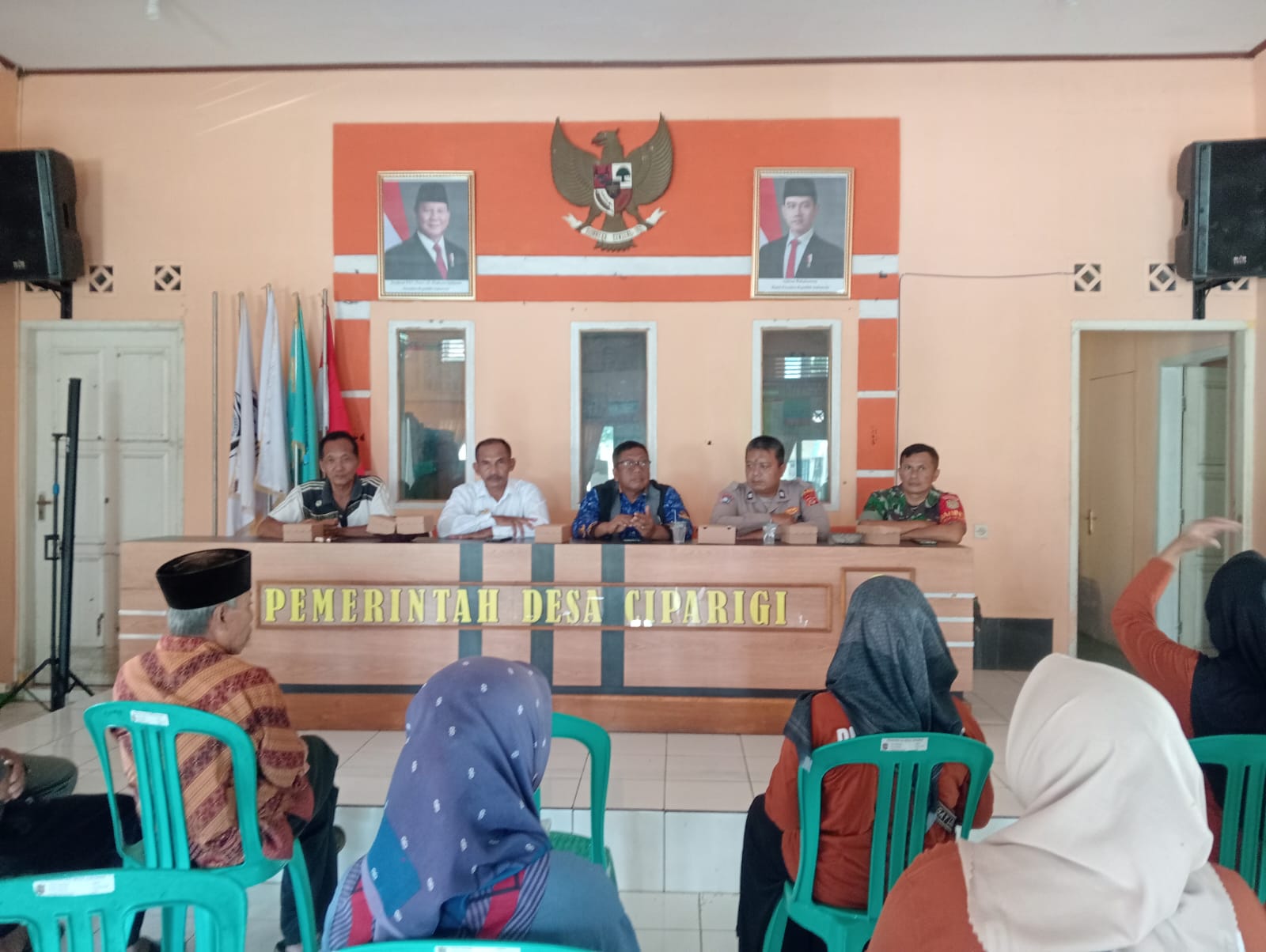 Kegiatan ini dilaksanakan oleh Anggota Bhabinkamtibmas Desa Ciparigi Polsek Sukadana Polres Ciamis Polda Jabar Aiptu Rahmat. Saat itu, anggota menghadiri kegiatan rapat mingguan tingkat desa. Kegiatan ini berlangsung di Aula Kantor Desa Ciparigi, Kecamatan Sukadana, Kabupaten Ciamis, Jawa Barat, Rabu (17/12/2025).
