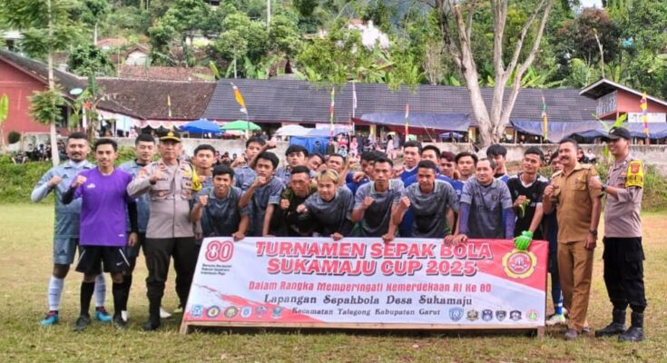 Garut | Personel Polsek Talegong melaksanakan kegiatan pengamanan pertandingan sepak bola di Lapangan Sepak Bola Desa Sukamaju, Kecamatan Talegong, Kabupaten Garut.