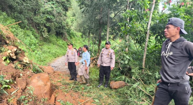 Garut.Jejak-kriminal.com-Kapolsek Talegong bersama petugas jaga piket Polsek Talegong melaksanakan pengecekan langsung ke lokasi kejadian longsor yang terjadi di jalan raya Cantigi, Desa Sukalaksana, Kecamatan Talegong, Kabupaten Garut. Selasa (18/02/2025).