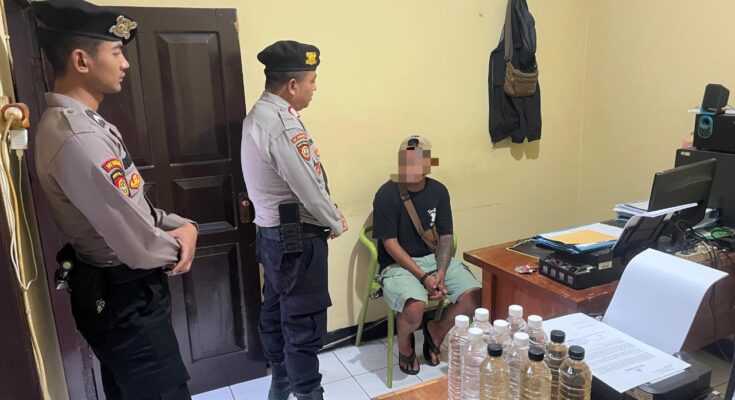 Garut | Polsek Tarogong Kidul amankan penjual minuman keras (miras) ilegal yang meresahkan warga di bawah Kherkof Blok Anarto Mall, Desa Haurpanggung, Kecamatan Tarogong Kidul.