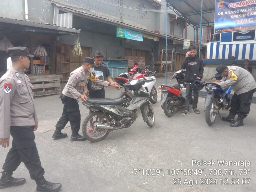 Polsek Wanaraja melakukan penindakan sebanyak 5 unit kendaraan roda dua yang memakai knalpot bising/tidak sesuai dengan spesifikasi.