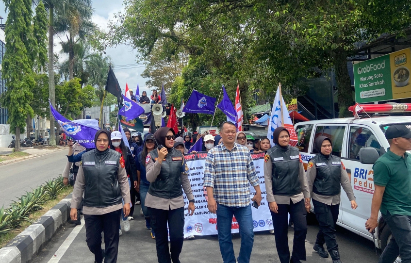 Polwan juga terlihat aktif menenangkan situasi di lapangan saat massa melakukan orasi di depan Kantor Bupati. Pendekatan ramah dan komunikatif membuat suasana tetap kondusif hingga kegiatan audiensi antara perwakilan buruh dan unsur pemerintah daerah selesai dilaksanakan.