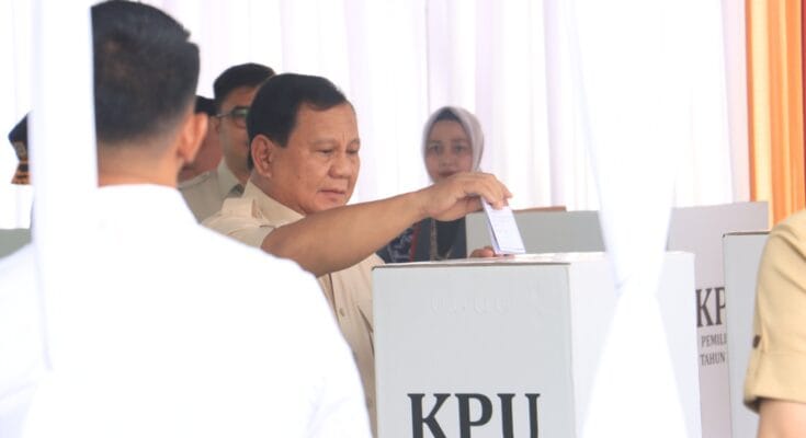 Presiden RI Prabowo dalam kesempatan tersebut menyampaikan apresiasi kepada penyelenggara Pemilu yang telah bekerja keras untuk kelancaran jalannya pemungutan suara.