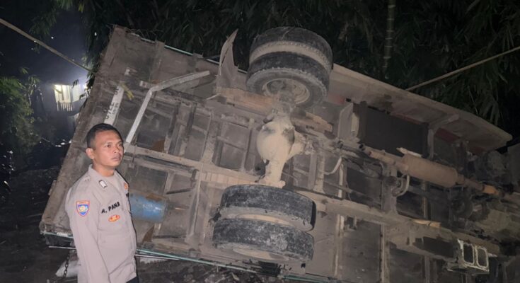 Garut – Sebuah kecelakaan lalu lintas tunggal terjadi di tanjakan Jalan Parungjawa, Desa Kadongdong, Kecamatan Banjarwangi, Kabupaten Garut, pada Minggu (24/8/2025) sekitar pukul 17.30 WIB. Peristiwa ini menimpa sebuah truk dengan nomor polisi T 8922 DP yang dikemudikan oleh Idad (23), warga Kampung Cijeruk, Desa Singajaya, Kecamatan Singajaya.