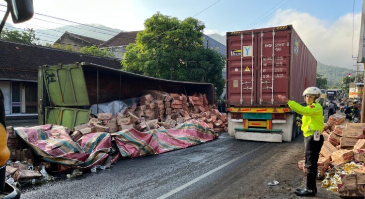 Garut,Jejak-kriminal.com-Kecelakaan lalu lintas terjadi di ruas jalan raya Malangbong, tepatnya di Kampung Cipeuyeum, Desa Sukamanah, Kecamatan Malangbong, Kabupaten Garut, Kamis pagi (31/7/2025) sekitar pukul 06.30 WIB. Insiden ini melibatkan dua kendaraan besar, yakni truk tronton bernomor polisi B-9321-UYY dan mitsubishi light truck bernomor polisi D-8122-XD.