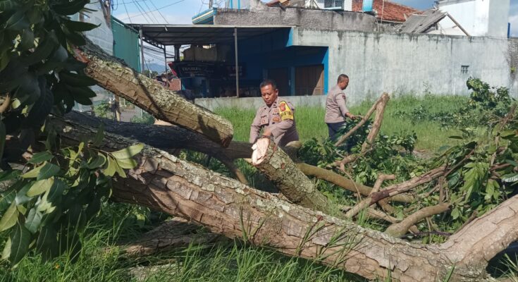 Garut — Hujan deras disertai angin kencang yang melanda wilayah Kecamatan Samarang pada Sabtu sore (24/01/2026) mengakibatkan sebuah pohon tumbang dan menutup akses jalan menuju Pesantren Jawiyah di Jalan Raya Samarang, Kampung Kalikingemped, RT 05 RW 09, Desa Samarang, Kabupaten Garut.