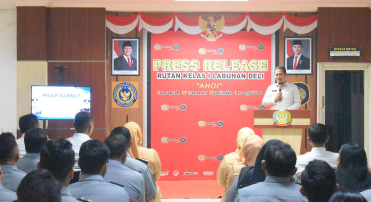 Labuhan Deli – Tongkat Kepemimpinan Kini Berganti, Rumah Tahanan Negara (Rutan) Kelas I Labuhan Deli Kanwil Ditjenpas Sumut menggelar Serah Terima Jabatan (Sertijab) dan Pisah Sambut Kepala Rutan dari pejabat lama Yohanes Dias Sanyoto kepada pejabat yang baru Eddy Junaedi, Senin (24/02).