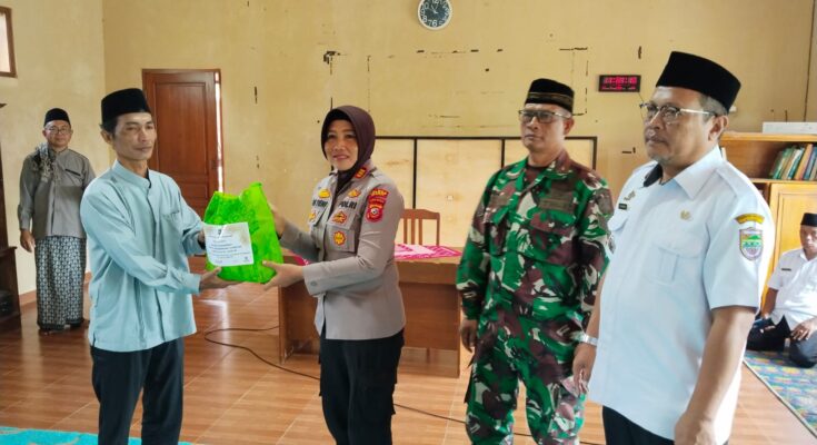 Di momen yang sama, Kapolsek Kawali mendampingi dan turut serta bersama Camat Lumbung menyerahkan cinderamata kepada pihak DKM Masjid Pondok Pesantren Al-Faqihiyah.