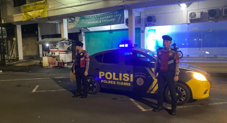 CIAMIS ~ Unit Patroli Sat Samapta Polres Ciamis Polda Jabar melaksanakan Patroli Biru dan bersiaga di wilayah perbelanjaan di Kabupaten Ciamis saat malam hari. Ini dalam rangka antisipasi aksi kriminalitas dan gangguan kamtibmas di area perbelanjaan. Patroli kali ini dilaksanakan di kawasan Ruko Terminal Ciamis, Ciamis, Kabupaten Ciamis, Jawa Barat, Rabu (25/2/2026), dini hari.