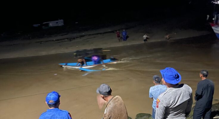 Garut.Jejak-kriminal.com-Sebuah perahu nelayan yang tenggelam di perairan Pompok, Kecamatan Cikelet, Garut, berhasil dievakuasi tanpa menelan korban jiwa. Selasa malam (18/02/2025).