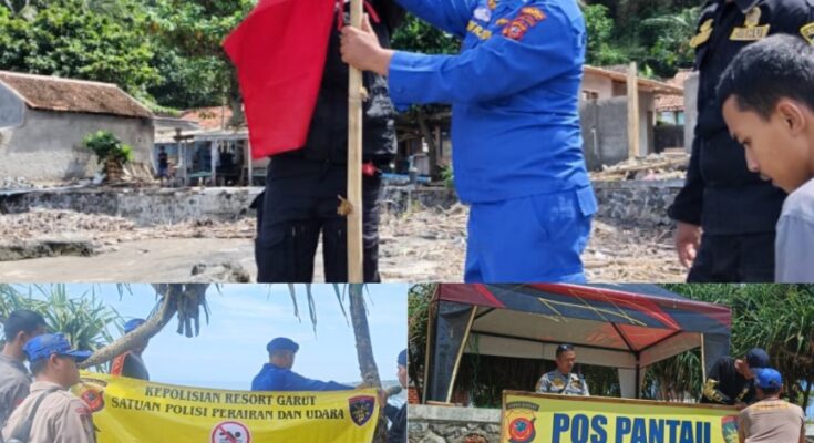 Garut Jejak-kriminal.com-Dalam rangka meningkatkan keselamatan wisatawan serta mencegah terjadinya kecelakaan dan laka laut di kawasan wisata pantai selatan, Satuan Polisi Perairan dan Udara (Sat Polairud) Polres Garut melaksanakan pemasangan pos pantau, bendera merah, serta spanduk imbauan larangan berenang, Rabu (24/12/2025).