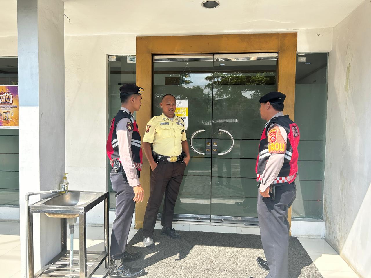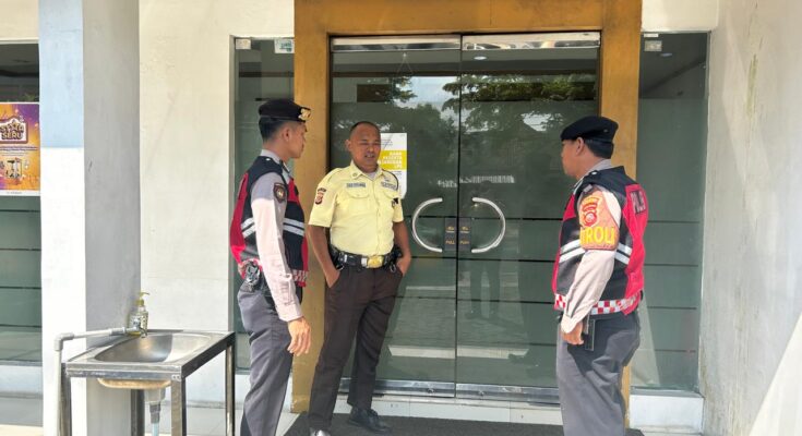 CIAMIS ~ Personel Satuan Samapta Polres Ciamis Polda Jabar melaksanakan koordinasi sekaligus pembinaan ke satuan keamanan (Satpam) perbankan. Pembinaan ini dilaksanakan ke Anggota Satpam Bank Bukopin Ciamis, Kecamatan Ciamis, Kabupaten Ciamis, Jawa Barat, Senin (16/6/2025).