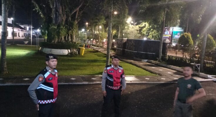 CIAMIS ~ Personel Satuan Samapta Polres Ciamis Polda Jabar melaksanakan patroli dialogis sekaligus pembinaan ke petugas keamanan Gedung Negara Pemerintah Kabupaten Ciamis. Kegiatan ini berlangsung di area Pemda Ciamis, Jalan Jenderal Sudirman No.16, Sindangrasa, Kecamatan Ciamis, Kabupaten Ciamis, Jawa Barat, Minggu, 11 Januari 2026, malam.