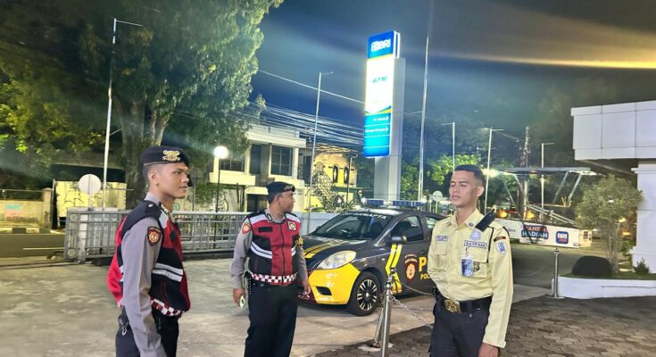 CIAMIS ~ Personel Satuan Samapta Polres Ciamis Polda Jabar melaksanakan koordinasi sekaligus pembinaan ke satuan keamanan (Satpam) perbankan. Pembinaan ini dilaksanakan ke Anggota Satpam Bank BRI Ciamis, Kecamatan Ciamis, Kabupaten Ciamis, Jawa Barat, Jumat, 26 September 2025, tengah malam.