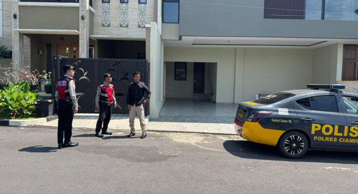 CIAMIS ~ Personel Polres Ciamis Polda Jabar melaksanakan patroli ke sejumlah rumah kosong yang ditinggal mudik dalam rangka operasi ketupat lodaya 2025. Salah satunya Patroli ini dilaksanakan di kawasan Perum Garden City Ciamis, Kabupaten Ciamis, Jawa Barat, Jumat (28/3/2025).