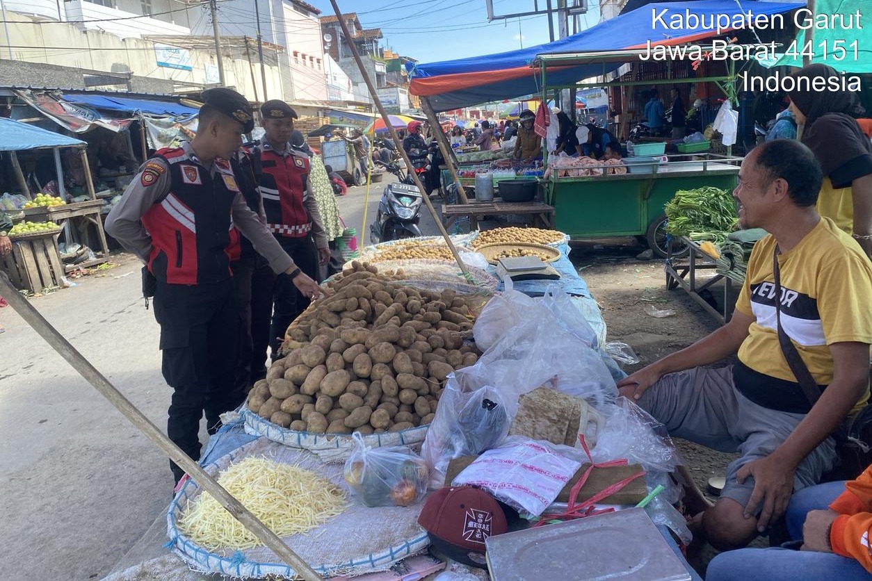 Dalam patroli tersebut, personel Sat Samapta Polres Garut melakukan pemantauan situasi serta berdialog dengan para pedagang dan pengunjung pasar. Minggu (9/3/2025).