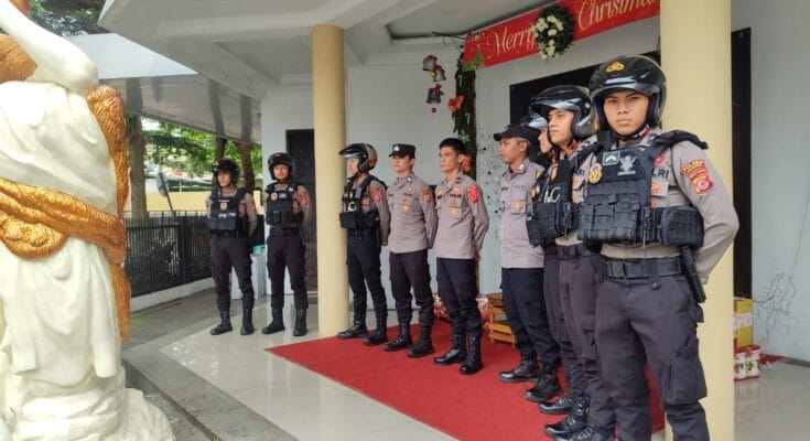 Patroli ini dilaksanakan oleh sejumlah personel Unit Dalmas Polres Ciamis Polda Jabar. Kali ini mereka menggunakan kendaraan dinas Polri mendatangi salah satu tempat ibadah di Kabupaten Ciamis. Mereka mengecek dan mendatangi pengurus tempat ibadah Gereja Santo Yohanes Pembabtis, Ciamis, Kabupaten Ciamis, Jawa Barat, Selasa (31/12/2024).