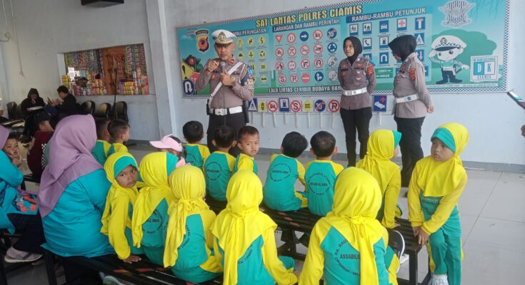 Ciamis – Kepolisian Resor Ciamis melalui Satuan Lalu Lintas terus menunjukkan komitmennya dalam membangun budaya tertib berlalu lintas sejak usia dini dengan menggelar kegiatan pendidikan masyarakat lalu lintas kepada siswa-siswi RA Assabilil Amin Selacai di Mapolres Ciamis sebagai bagian dari program Polisi Sahabat Anak, Senin (02/02/2026).