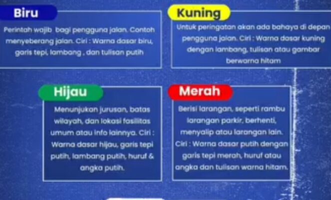 Dalam kegiatan sosialisasi terbaru, Satlantas Polresta Medan menekankan pentingnya pemahaman masyarakat terhadap arti warna dasar rambu lalu lintas, antara lain warna biru untuk perintah, kuning untuk peringatan bahaya, merah untuk larangan, hijau untuk petunjuk arah, serta putih untuk tanda batasan tertentu. Pemahaman ini diharapkan dapat mengurangi angka pelanggaran yang berujung kecelakaan.
