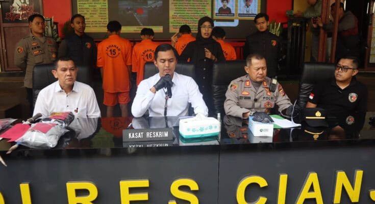 Polres Cianjur – Jejak-kriminal.com- Sat reskrim Polres Cianjur melaksanakan konferensi pers pengungkapan kasus tindak pidana pengeroyokan yang mengakibatkan korban jiwa. Konferensi pers tersebut dipimpin oleh Kasatreskrim Polres Cianjur AKP Tono Litianto, S.T.K., S.I.K., M.H., C.P.H.R. dan berlangsung di depan Gedung Satreskrim Polres Cianjur, Senin (16/12/2024).
