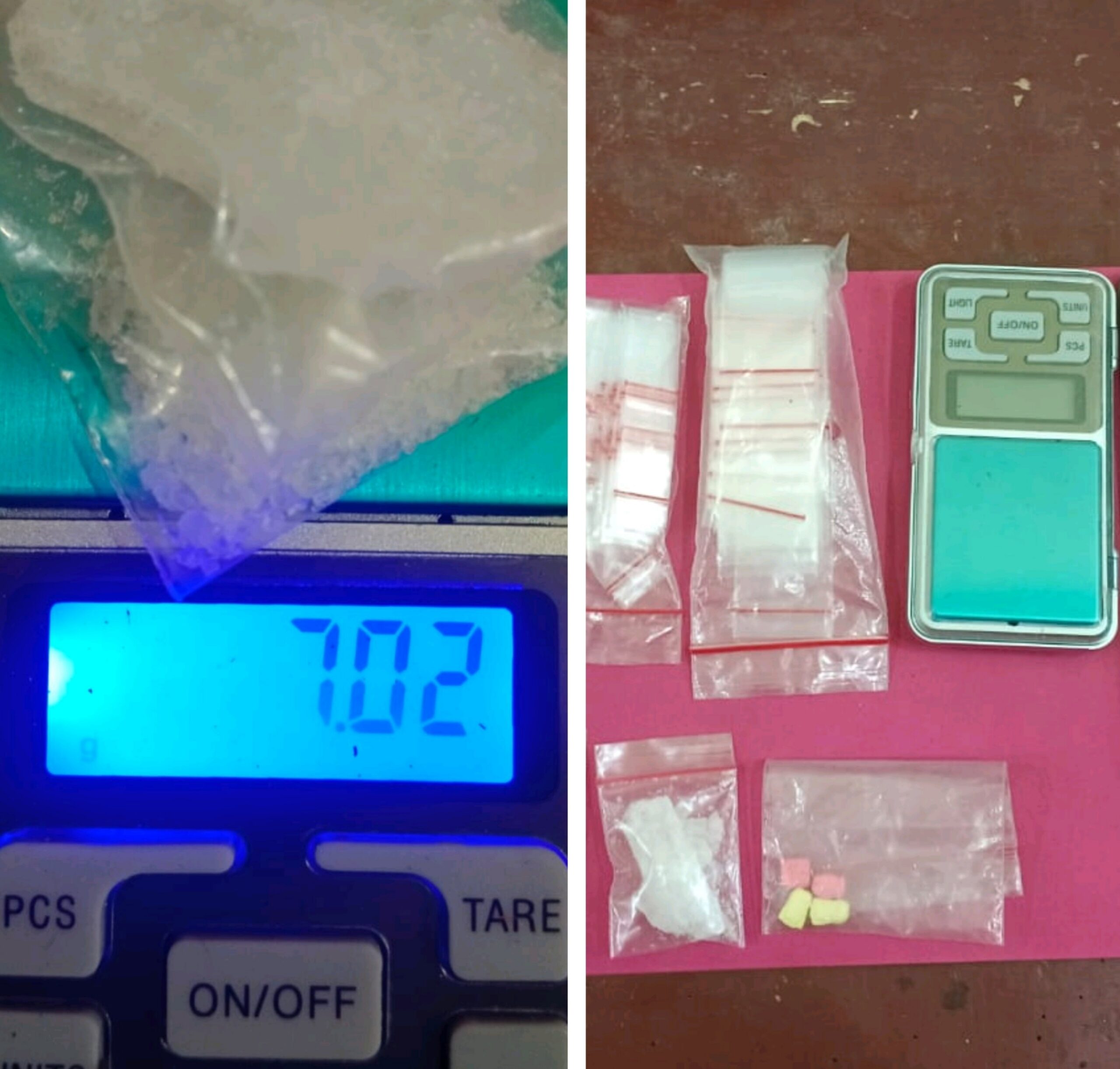 Serta mengamankan barang bukti yang ada padanya berupa 1 buah Tas samping., 1 Buah alat timbangan., 2 buah plastik klip berisikan narkoti jenis sabu dengan berat beruto 7,02 gr., uang tunai Rp.200.000, 2 bal plastik klip kosong., 4 butir pil ekstasi, dan 1 unit handphone android merek oppo.