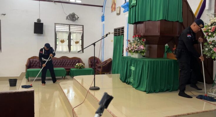 Kegiatan penuh makna ini dipimpin oleh IPDA Hotlin L.S Purba, S.H, selaku Danton 4 Kompi 2 Batalyon B Satuan Brimob Polda Sumut, dan diikuti oleh 10 personel Brimob. Dalam kesempatan tersebut, para personel dengan penuh semangat dan ketulusan melaksanakan pembersihan lingkungan rumah ibadah serta menyerahkan bantuan berupa alat-alat kebersihan kepada pihak gereja.