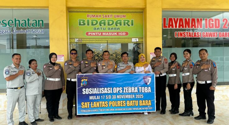 Operasi Zebra Toba 2025, dan pelaksanaan tugas sehari-hari. Satuan Lalulintas Polres Batu Bara, Polda Sumatera Utara melaksanakan Sosialisasi kepada warga masyarakat dalam rangka menurunkan angka pelanggaran dan kecelakaan, menciptakan ketertiban serta ketaatan dalam berkendara, di halaman Rumah Sakit Bidadari Desa Sukaraja, Kecamatan Airputih, Rabu (26/11/2025) Pukul 11.00 Wib.