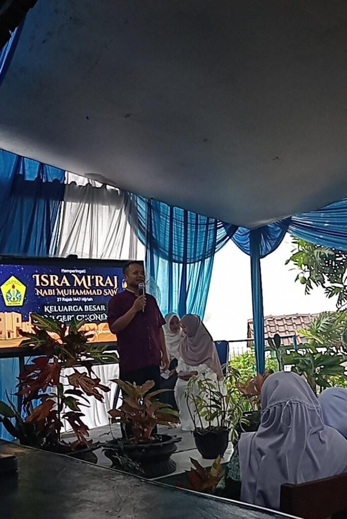Dalam sambutannya, Bapak Budi S.Pd. menyampaikan makna mendalam dari peristiwa Isra Mi’raj yang patut diambil sebagai pelajaran hidup bagi seluruh warga sekolah, terutama para siswa. “Kita semua harus mengingat sejarah penting peristiwa Isra Mi’raj, di mana dalam peristiwa tersebut, shalat dijatuhkan sebagai kewajiban yang sangat penting bagi setiap umat Islam,” ujarnya.