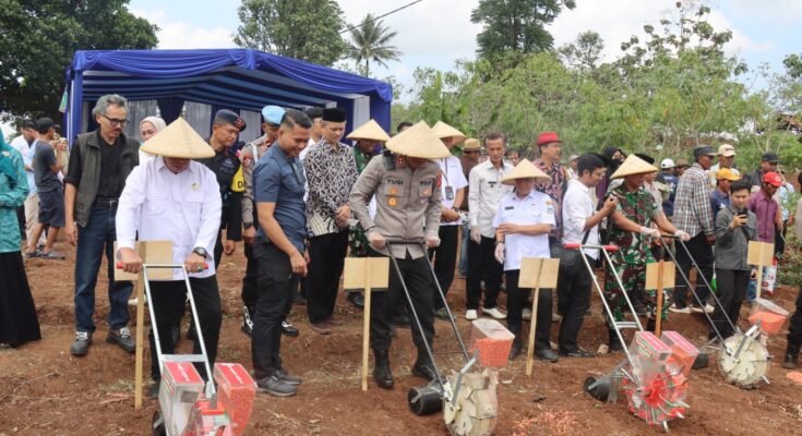 Garut — Dalam upaya mendukung program pemerintah menuju Swasembada Pangan Nasional Tahun 2025, Polres Garut bersama Forkopimda melaksanakan Kegiatan Penanaman Jagung Serentak Kuartal IV, pada Rabu (8/10/2025) bertempat di Kampung Jati, Desa Dangdeur, Kecamatan Banyuresmi, Kabupaten Garut.