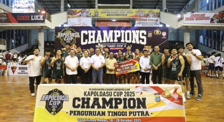 MEDAN – Suasana GOR Gedung Serba Guna Unimed, Selasa (28/10/2025), dipenuhi sorak sorai para supporter dan penonton yang antusias menyaksikan babak puncak Kapoldasu Cup 2025, turnamen bola basket bergengsi antar pelajar SMA/SMK dan mahasiswa se-Sumatera Utara. Kegiatan ini berlangsung meriah sekaligus menjadi momentum semangat kebersamaan dan sportivitas di Hari Sumpah Pemuda ke-97.