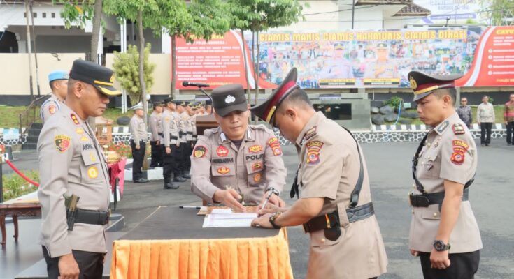 Ciamis – Kapolres Ciamis AKBP Akmal, S.H., S.I.K., M.H. memimpin langsung upacara serah terima jabatan (sertijab) Kasat Lantas, pengukuhan Kapolsek Rancah, serta pemberian penghargaan kepada personel purnabakti dan anggota berprestasi di lingkungan Polres Ciamis, yang digelar di Lapangan Apel Mapolres Ciamis, pada Kamis pagi (8/5/2025).