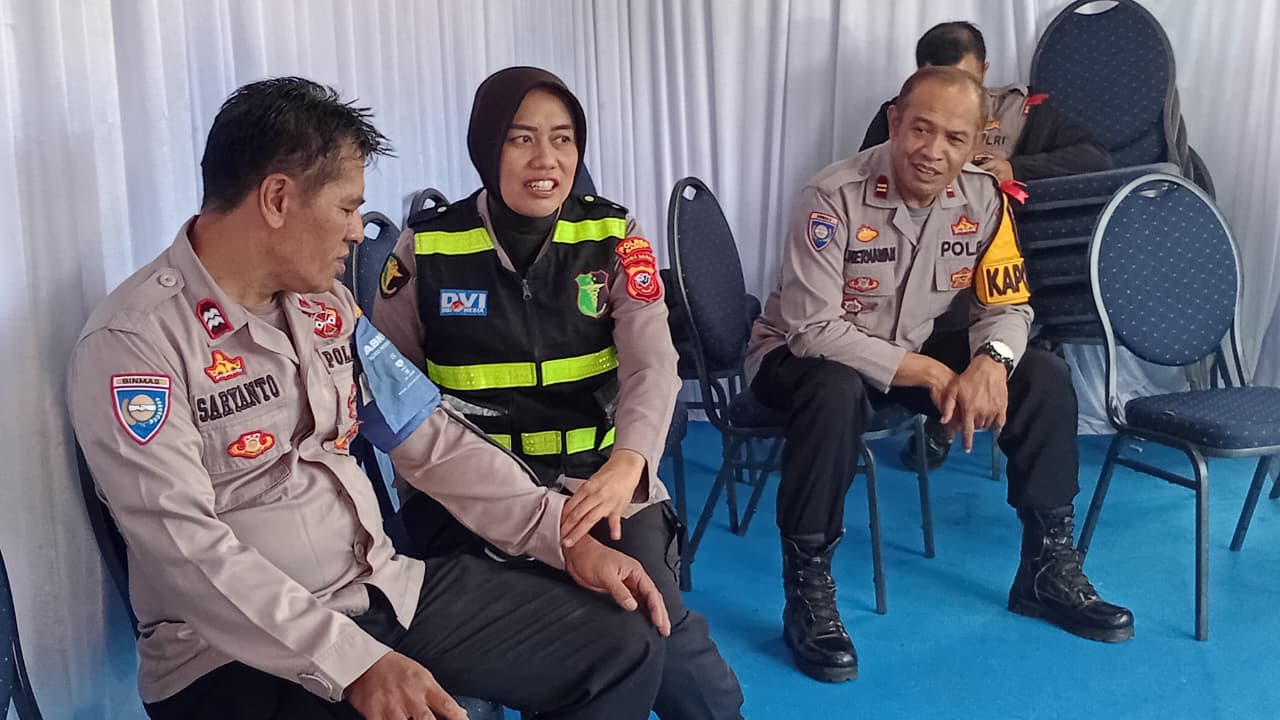 Adapun pemeriksaan kesehatan yang dilakukan meliputi pemeriksaan tekanan darah (tensi), tanda-tanda vital (TTV), pemberian vitamin dan obat-obatan, edukasi kesehatan, serta patroli P3K bagi personel yang melaksanakan tugas pengamanan.
