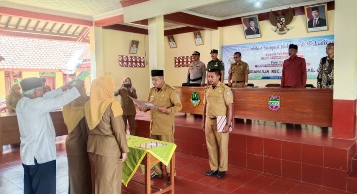 CIAMIS ~ Polsek Lakbok Polres Ciamis Polda Jabar menghadiri pelantikan Kepala Seksi Pelayanan serta Kepala Urusan Tata Usaha dan Umum Desa Sidaharja. Pelantikan ini berlangsung di Aula Kantor Desa Sidaharja, Kecamatan Lakbok, Kabupaten Ciamis, Jawa Barat, Selasa (6/1/2026).