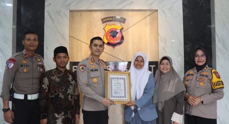 Kapolres Garut AKBP Mochmad Fajar Gemilang, S.I.K., M.H., M.I.K., menyampaikan kebanggaannya terhadap Ai Darliyyah yang telah membawa nama baik sekolah dan daerah.