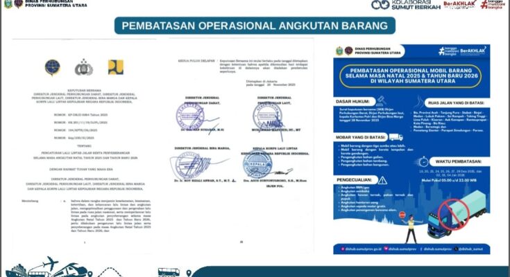 Medan Jejak-kriminal.com-Dalam rangka menjamin kelancaran arus lalu lintas serta meningkatkan keselamatan dan kenyamanan masyarakat selama perayaan Natal 2025 dan Tahun Baru 2026, Polda Sumatera Utara memberlakukan pembatasan operasional angkutan barang di sejumlah ruas jalan utama wilayah Sumatera Utara.