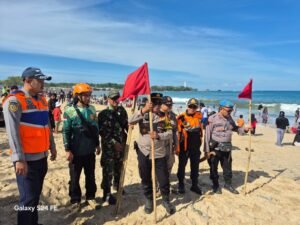 Polsek Cikelet Giat Pemasangan Bendera Merah Di Pantai Santolo, Dalam Rangka OPS Ketupat Lodaya 2026