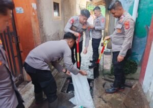 Polres Garut Sigap Bantu Warga Bersihkan Material Sisa Banjir