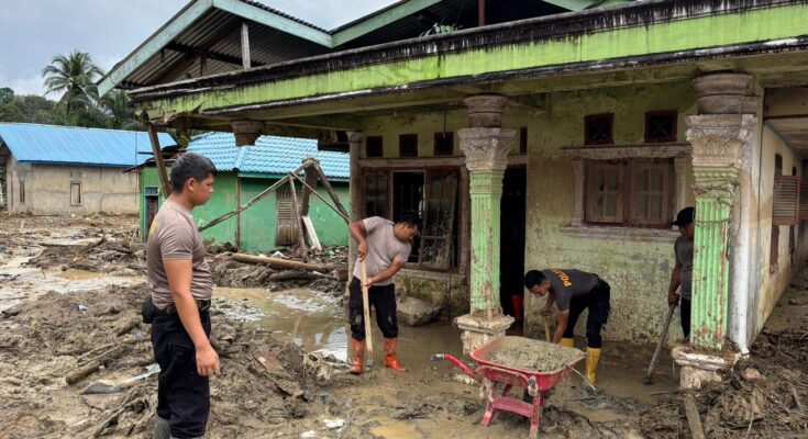 Tapanuli Selatan – Personel Satuan Brimob Polda Sumatera Utara sampai hari ini masih terus membantu membersihkan rumah warga yang terdampak banjir bandang di Desa Huta Godang dan sekitarnya, Kecamatan Batang Toru, Kabupaten Tapanuli Selatan, Minggu (28/12/2025).